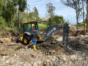 Durante las primeras horas de este domingo, la prefecta Cecilia Méndez Mora y la viceprefecta Magali Quezada Minga, recorrieron y llegaron con maquinaria al lugar de la emergencia suscitado en los cantones orientales de Chordeleg y Gualaceo, por el desbordamiento del río Pungohuayco, que es uno de los afluentes del río Santa Bárbara.
