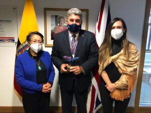 La primera autoridad del Azuay se reunió con los Embajadores de Alemania, Francia y de Reino Unido, así como con representantes de UNICEF, FAO, PMA, AECID, JICA, Banco Mundial y de la Delegación de la Unión Europea en Ecuador. En el caso de la FAO, se coordinará la visita del representante de dicha organización a la provincia, para verificar las necesidades del sector lechero e impulsar proyectos agropecuarios, conjuntamente con la Dirección de Desarrollo Económico y la Empresa de Economía Mixta LactJubones.